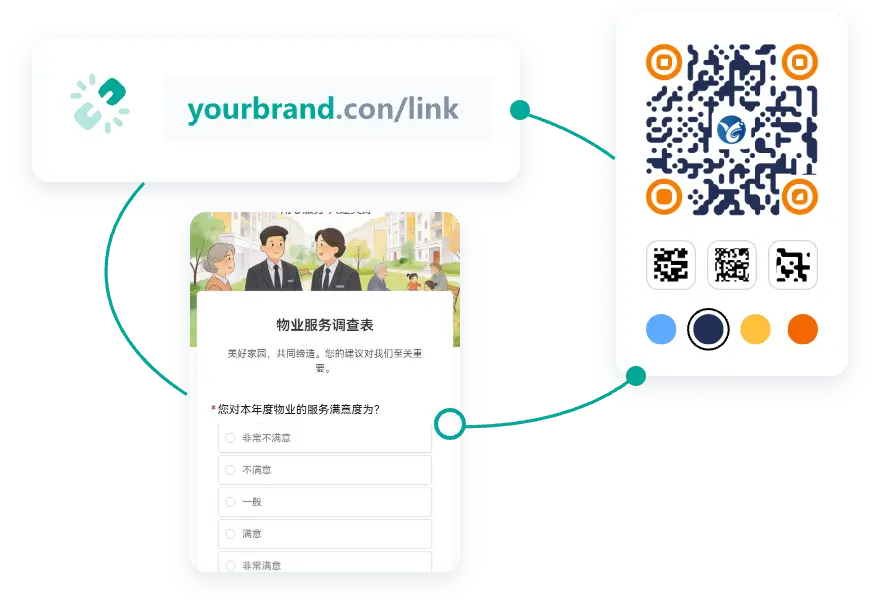 支持二维码进行美化、权限设置等多种功能。用户可以根据自身品牌的调性调整二维码的颜色,同时还可以在二维码中间插入自身的品牌logo,提升企业的品牌认知度。还可以与文字、图片、音视频等素材进行组合,形成一个小型的页面。